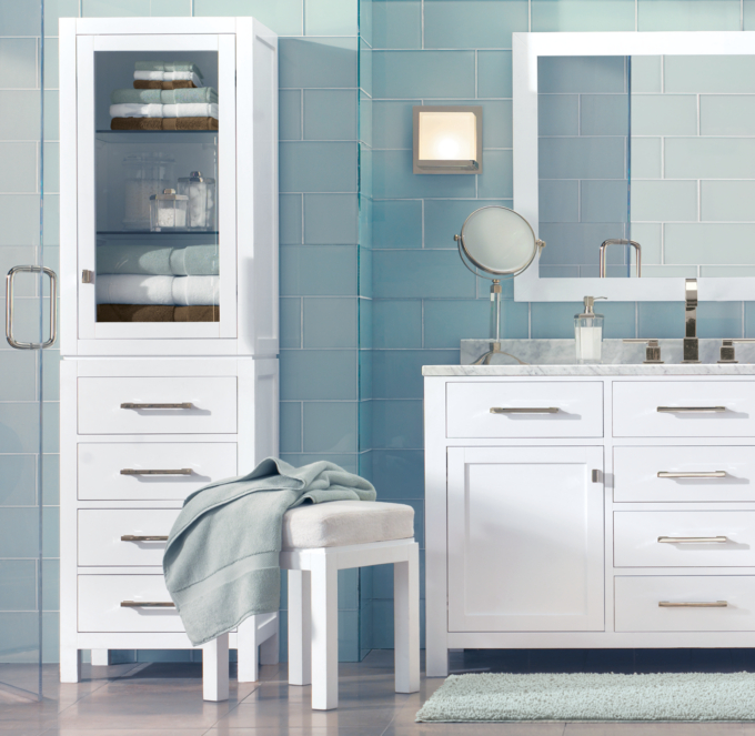 Strip, sand, prime and paint the window and door trim and the medicine cabinet.